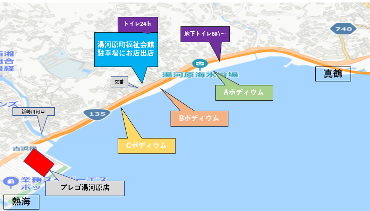 選手の方はプレゴ湯河原店に駐車をお願い致します。